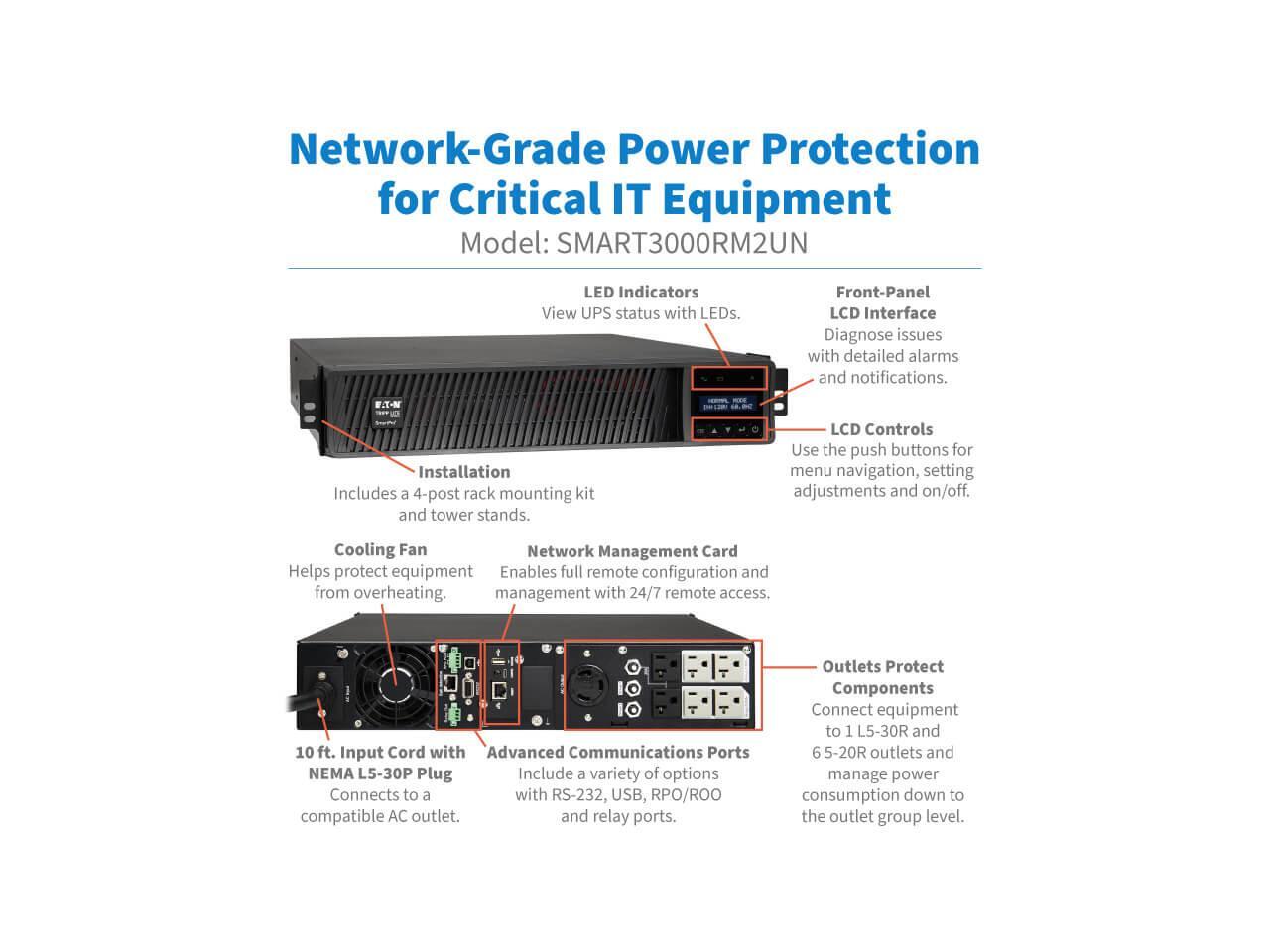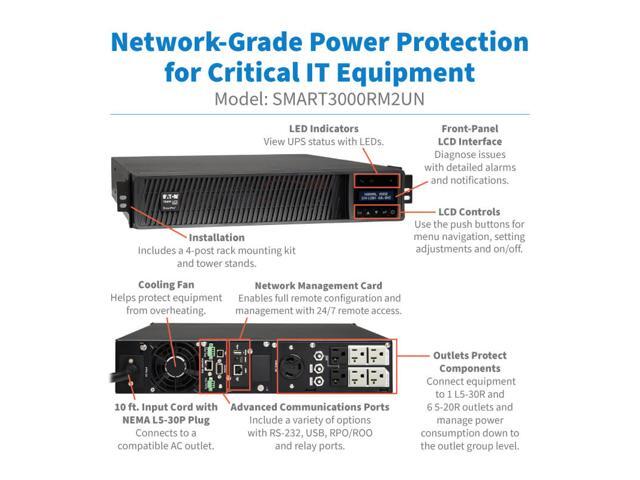 Tripp Lite series SmartPro 3000VA 3000W 120V Line-Interactive Sine Wave UPS - 7 Outlets, Network Card Included, LCD, USB, DB9, 2U Rack/Tower (SMART3000RM2UN)