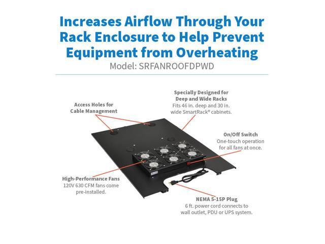 Tripp Lite SRFANROOFDPWD Series SmartRack Roof-Mounted Fan Panel for Deep and Wide Rack Enclosure Cabinets - 6 120V Fans, 630 CFM, 5-15P Plug