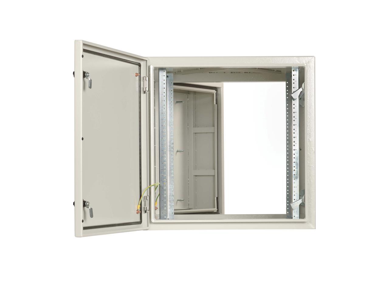 - Enclosed, sealed metal housing protects 12U of rack equipment up to 32 in. deep