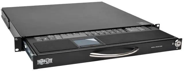 The SRSHELFKBD SmartRack 1U Rack-Mount Keyboard is a full 104-key keyboard and two-button touchpad designed for mounting in an EIA-standard 19-inch rack. Ideal for use with KVM switches and servers that don't include a keyboard, the SRSHELFKBD comes with a USB-A cable for quick connection. Use the convenient handle to slide the keyboard out of the rack for easy access and slide it back, hidden away, when not in use. Protected by a heavy-duty steel housing with a black finish. Compatible with both two- and four-post racks(Tripp Lite's B019-000 bracket is required for two-post mounting).