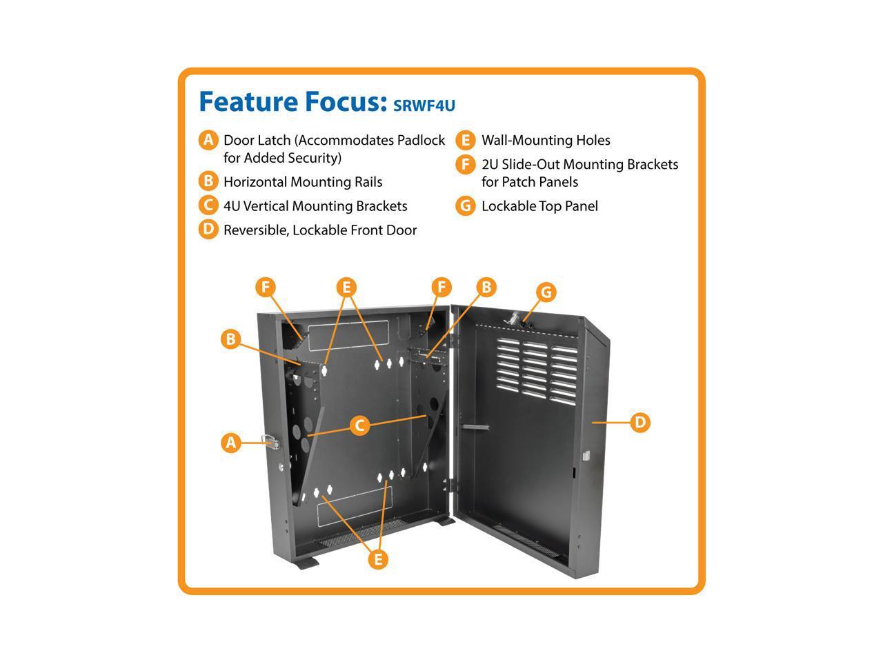 Tripp Lite SmartRack 4U Low-Profile Vertical-Mount Switch-Depth Wall-Mount Rack Enclosure Cabinet