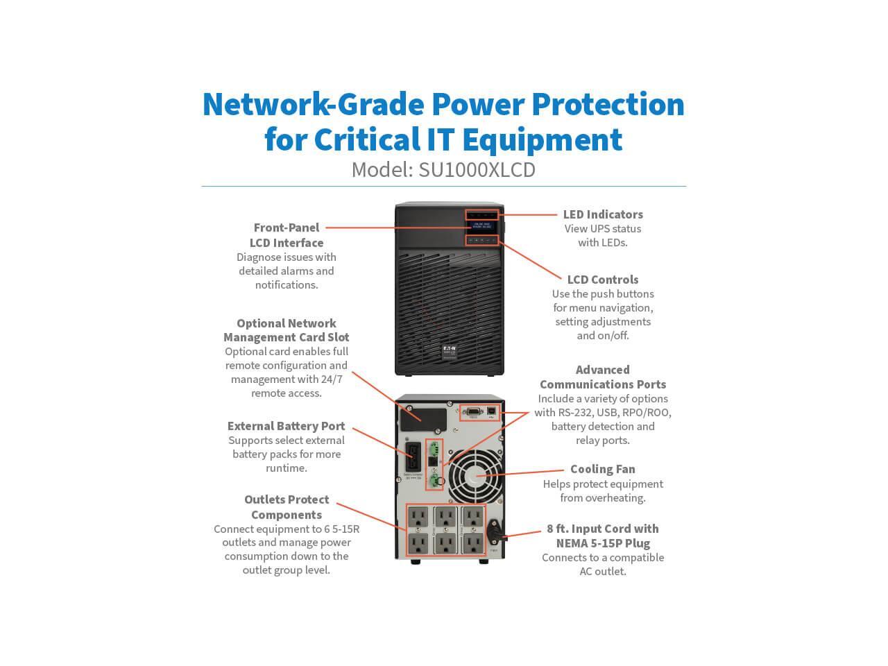 Tripp Lite series SmartOnline 1000VA 900W 120V Double-Conversion UPS - 6 Outlets, Extended Run, Network Card Option, LCD, USB, DB9, Tower (SU1000XLCD)
