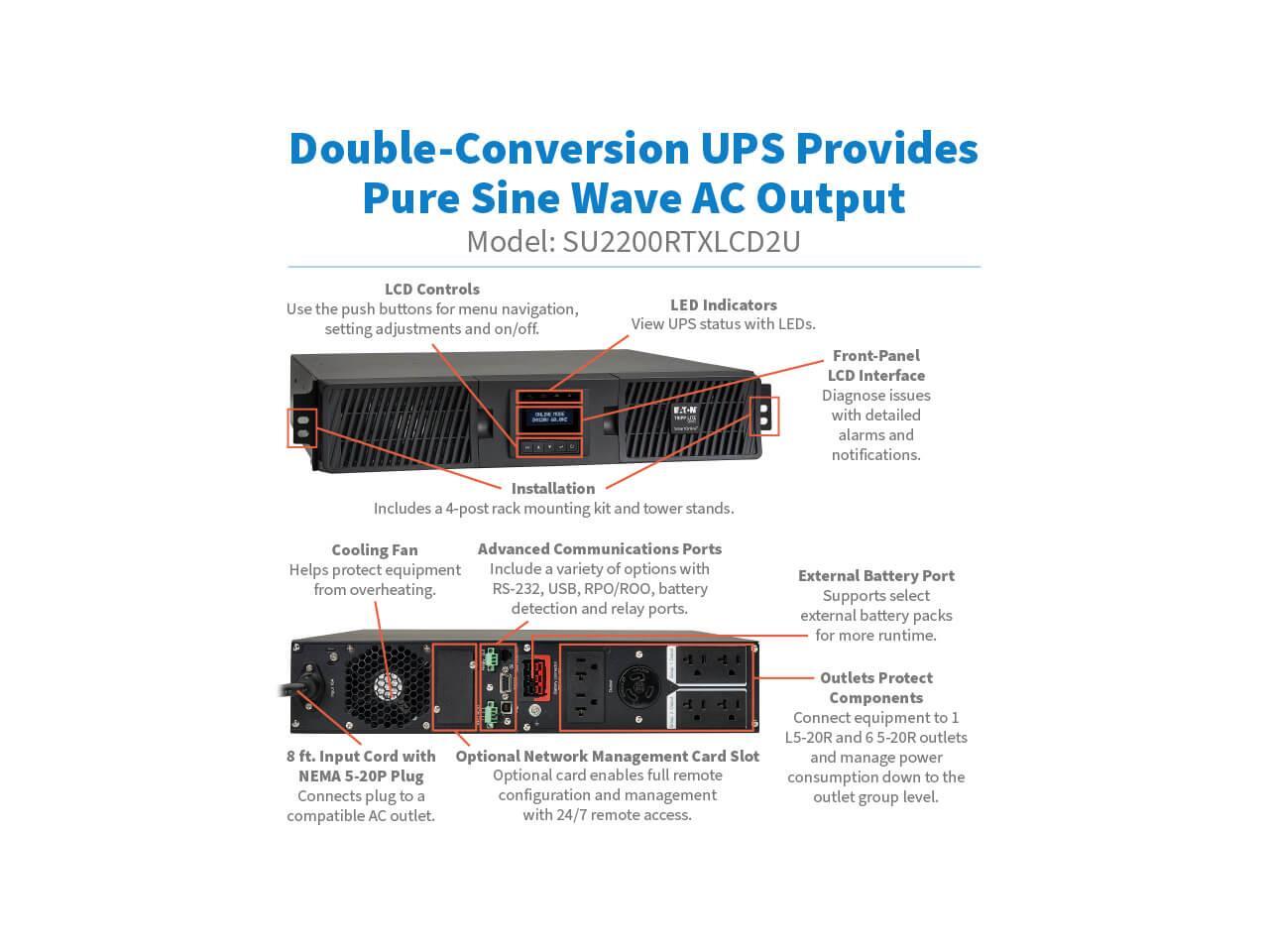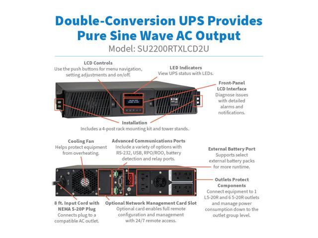 - 2kVA 1.8kW 120V Battery Backup Protects Equipment against Damage, Downtime and Data Loss