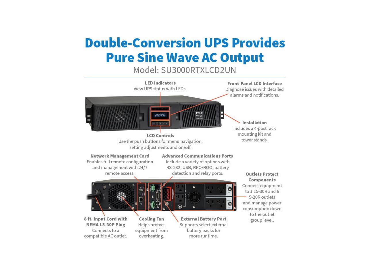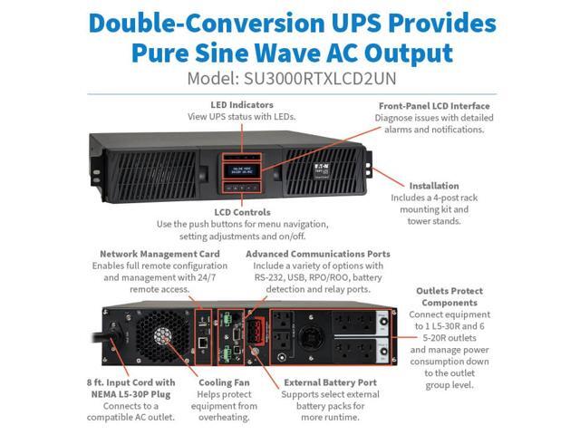 Tripp Lite series SmartOnline 3000VA 2700W 120V Double-Conversion UPS - 7 Outlets, Extended Run, Network Card Included, LCD, USB, DB9, 2U Rack/Tower