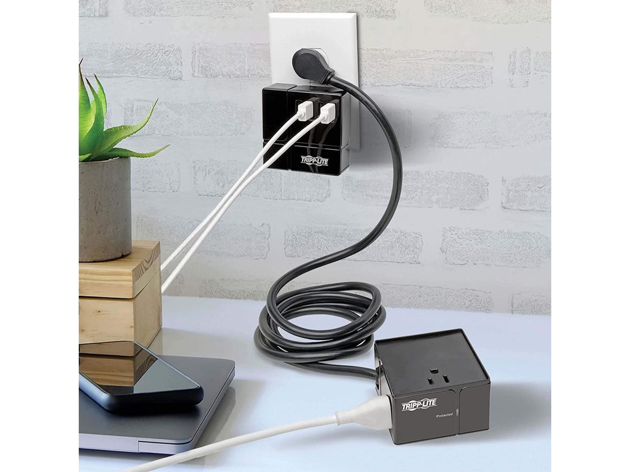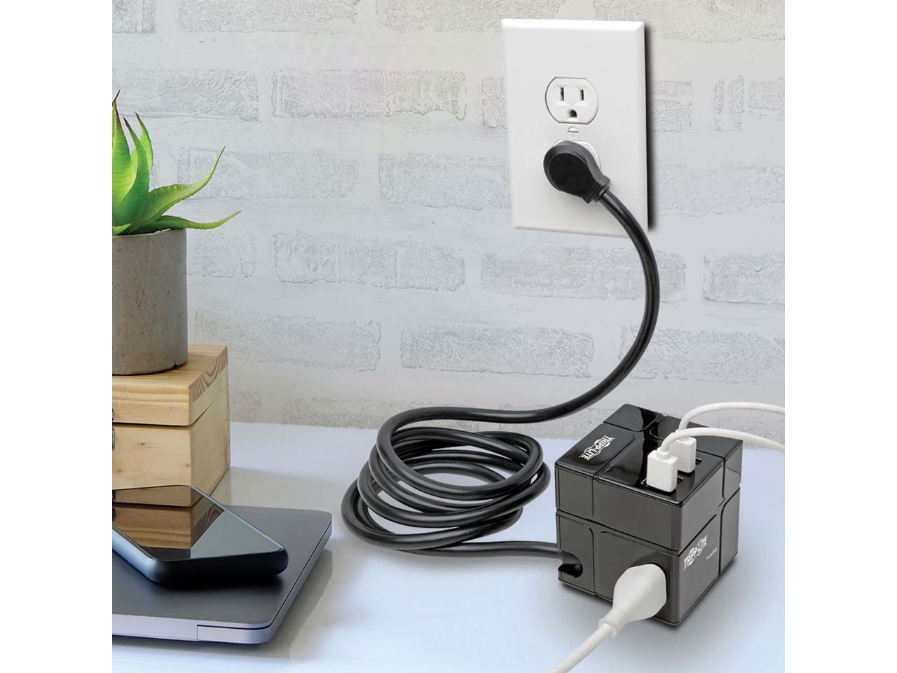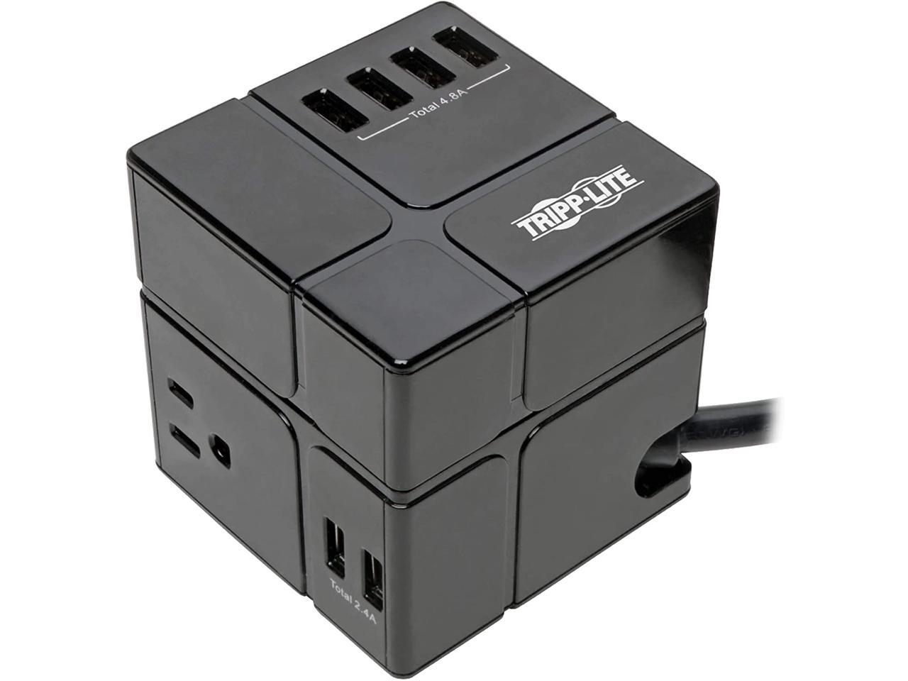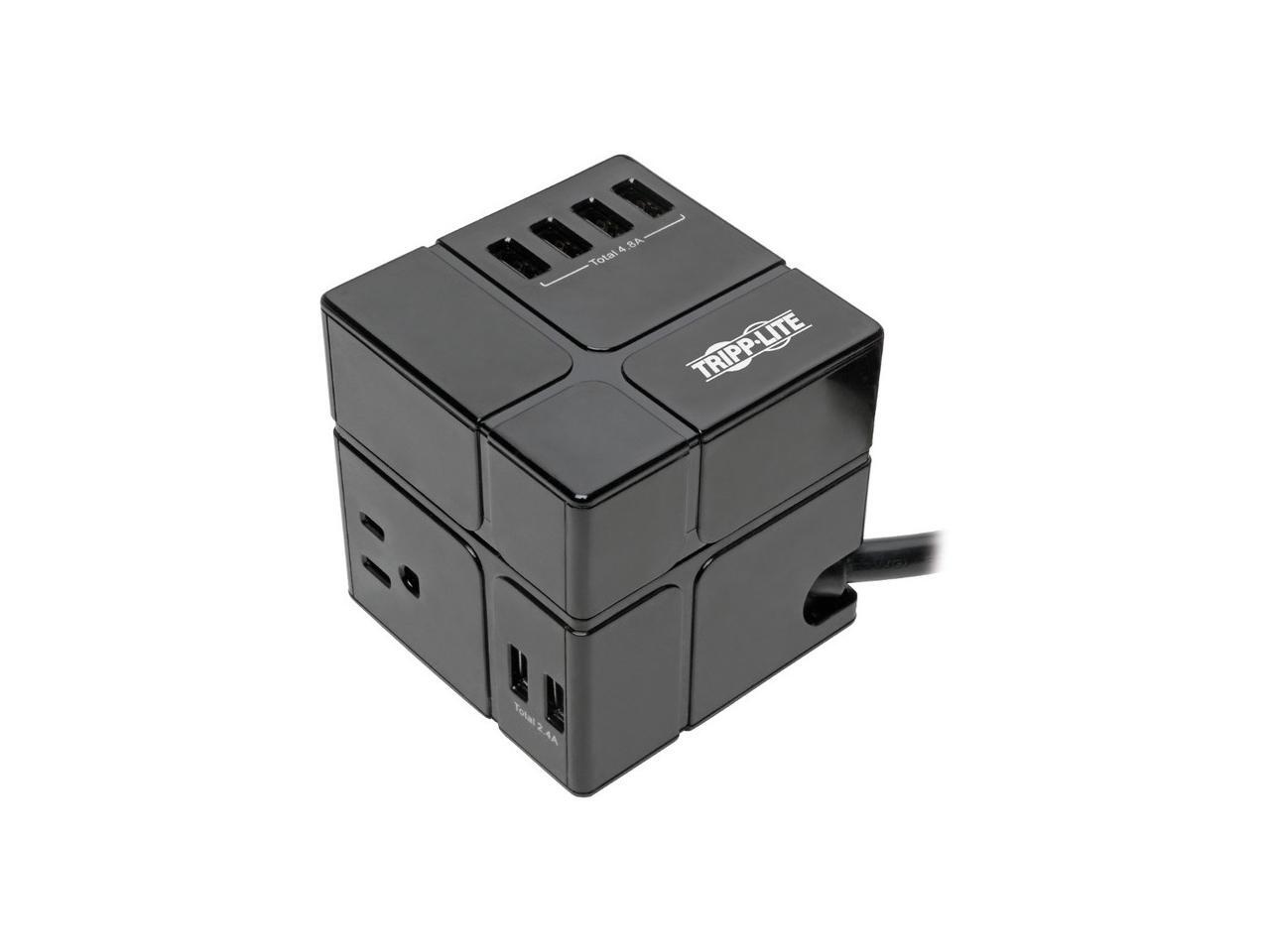 Tripp Lite Surge Protector 3 Outlet 6 USB-A Power Cube Black TLP366CUBEUSBB
