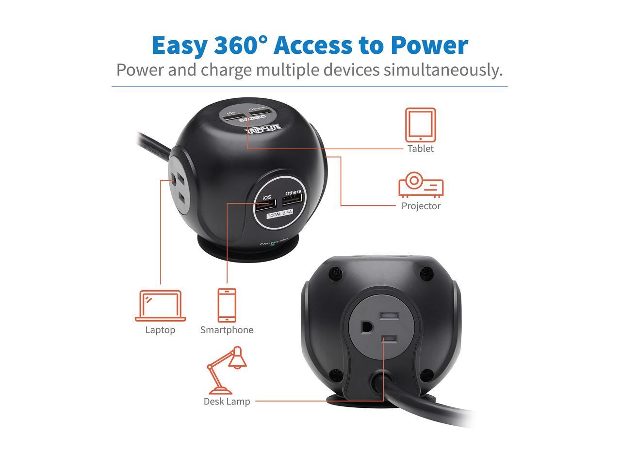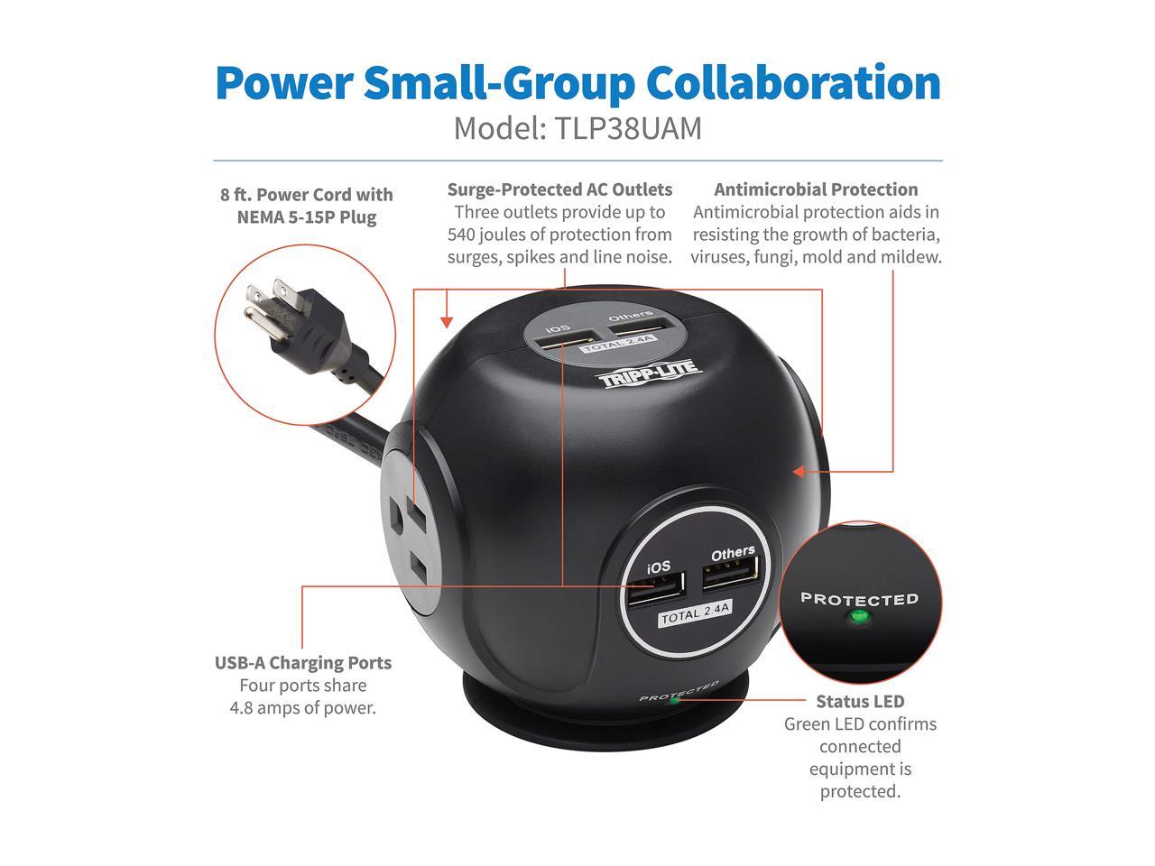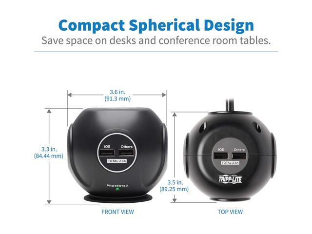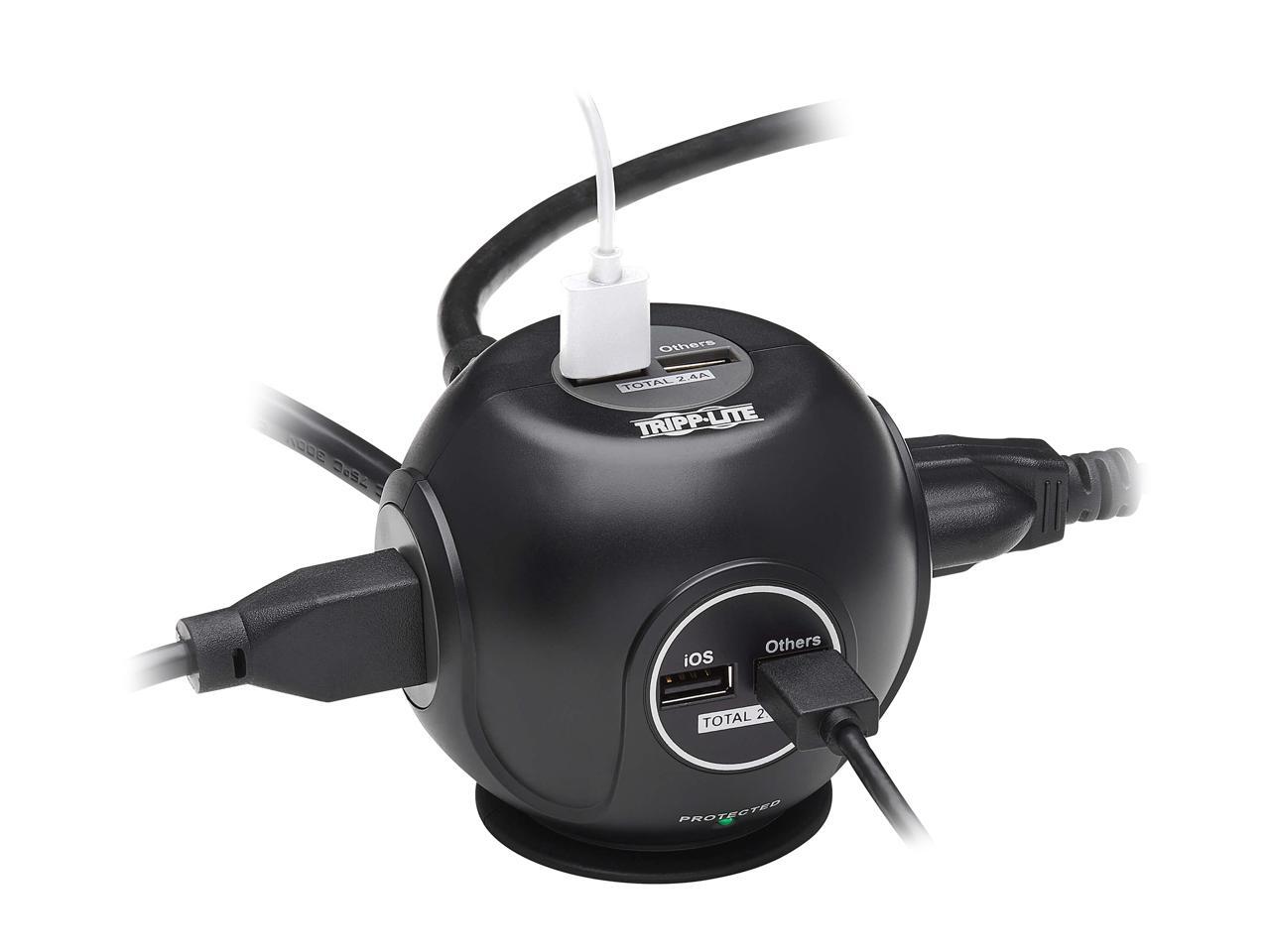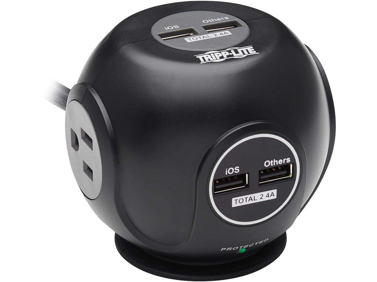 TRIPP LITE Safe-IT Spherical Surge Protector 3-Outlets 4 USB Ports 6ft Cord