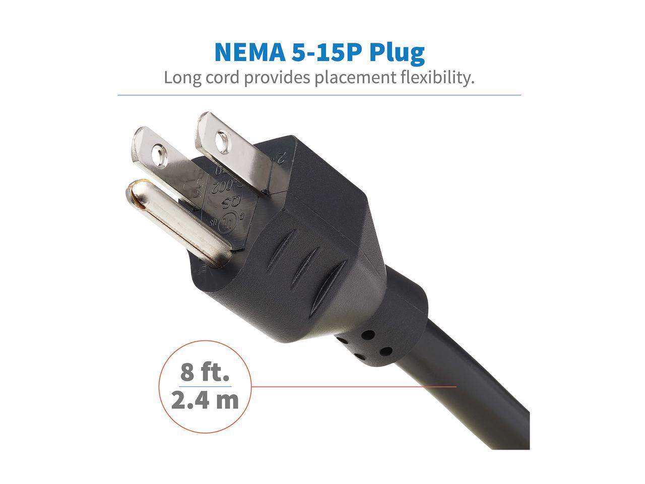 - Three NEMA 5-15R outlets are spaced apart to accommodate bulky transformers. Four USB ports share 4.8A for fast charging of phones, tablets and other mobile devices