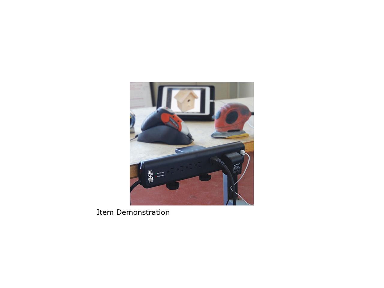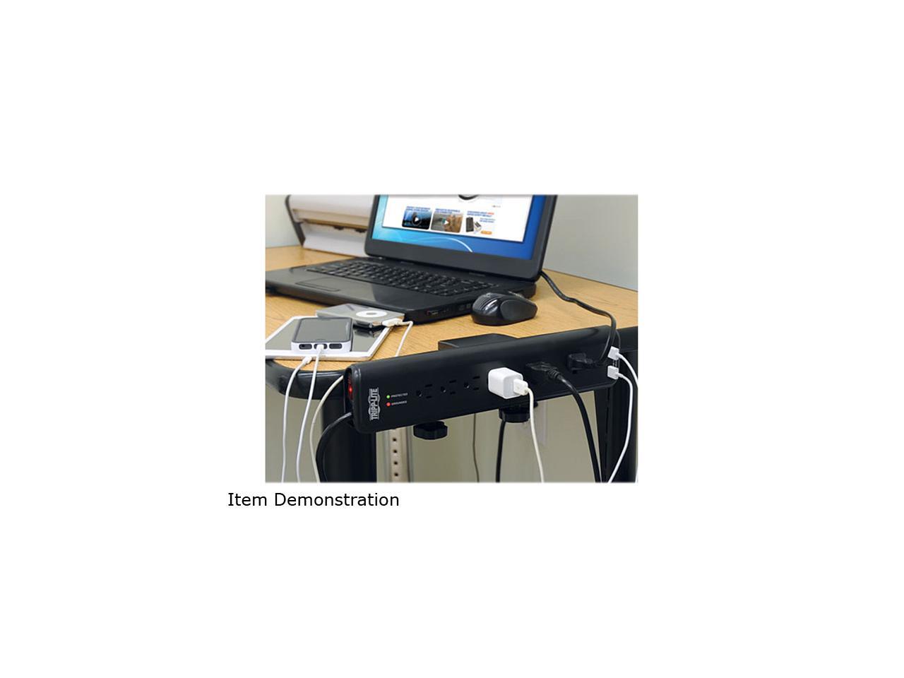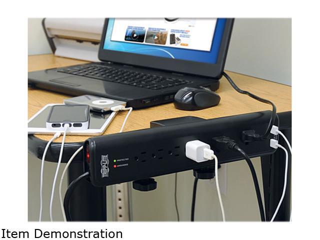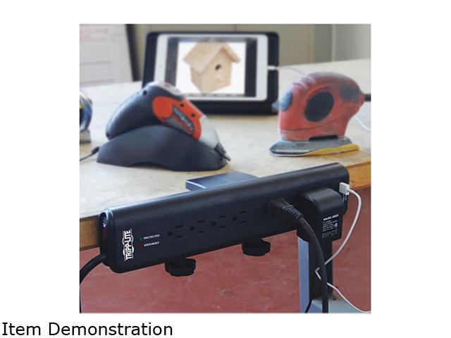Tripp Lite TLP606DMUSB Protect It! 6- Outlet Clamp-Mount Surge Protector, 6-ft. Cord, 2100 Joules, 2 USB Charging Ports (2.1A total)