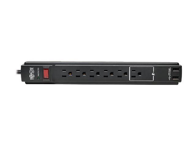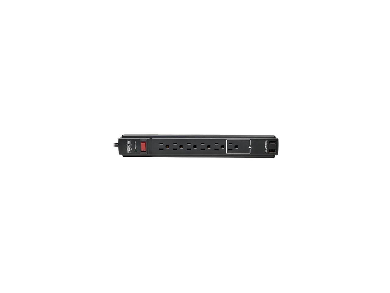 Tripp Lite TLP606USB Protect It! 6- Outlet Surge Protector, 6-ft. Cord, 990 Joules, 2 USB Charging Ports (2.1A), Black Housing