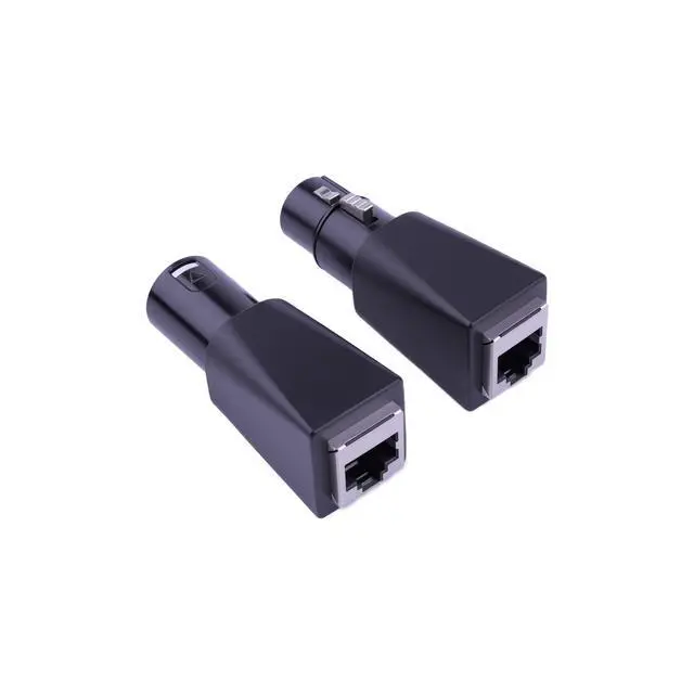 Converts DMX512 XLR connector to RJ45 connector, Enables use of CAT-5 ethernet cable as DMX512 cable, Compatible with 3-pin and 5-pin XLR configurations