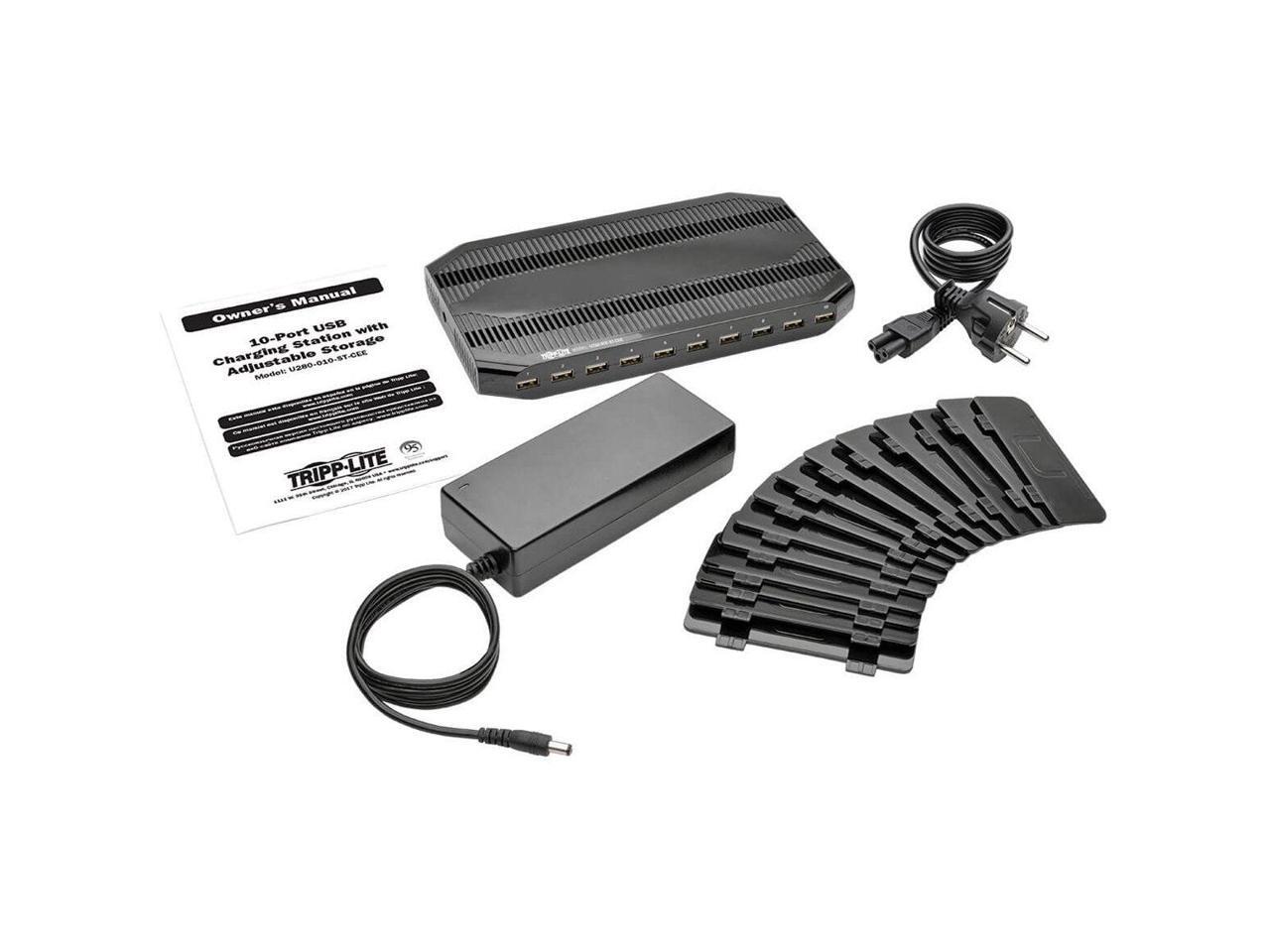 Tripp Lite U280-010-ST-CEE 10-Port USB Charging Station with Adjustable Storage, 12V 8A (96W) USB Charger Output, Schuko Power Cord