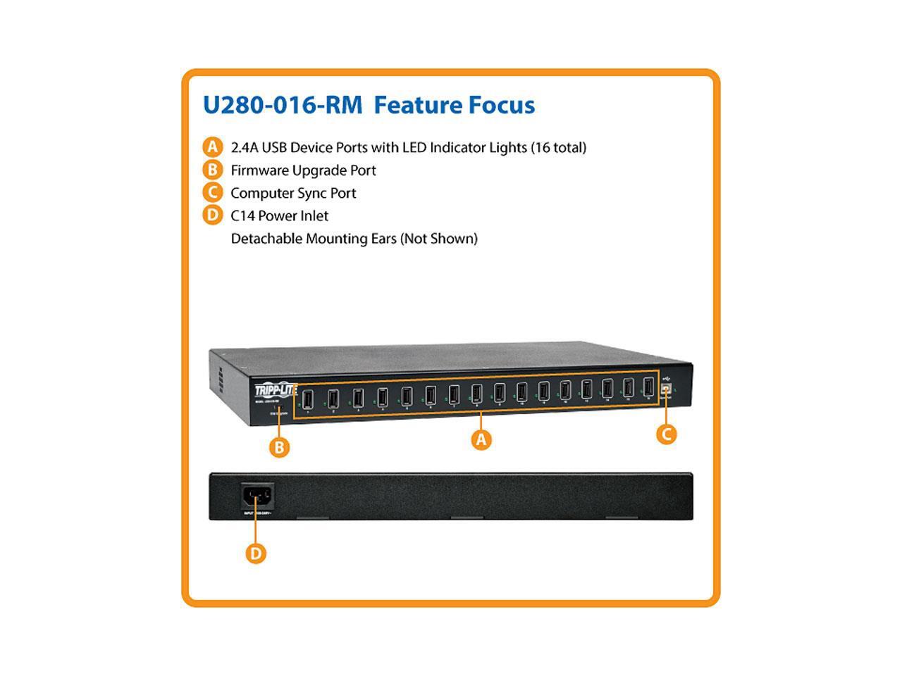 Tripp Lite 16-Port USB Charging Station with Syncing Function - 5V 40A / 200W USB Charger Output (U280-016-RM)