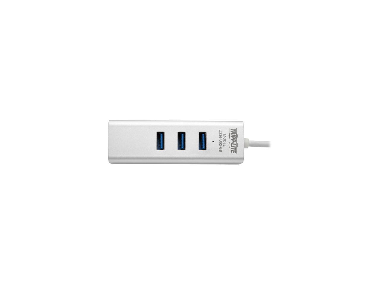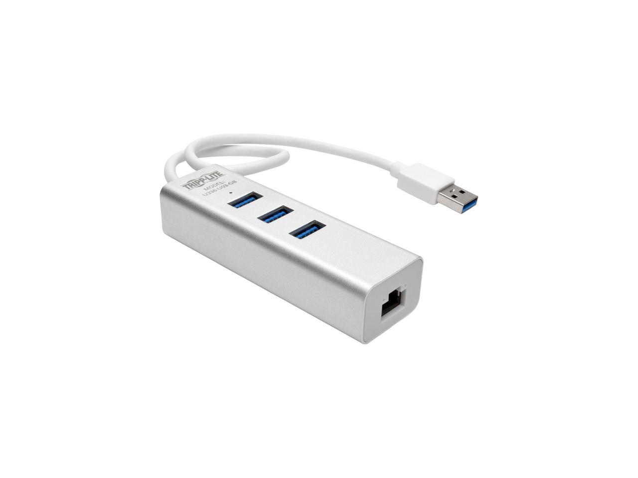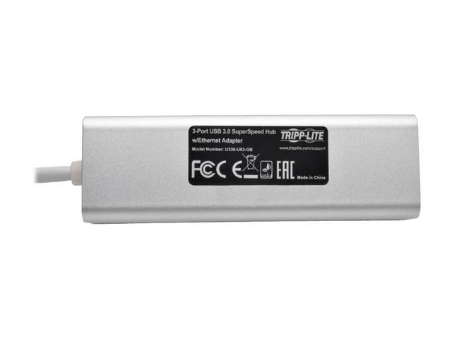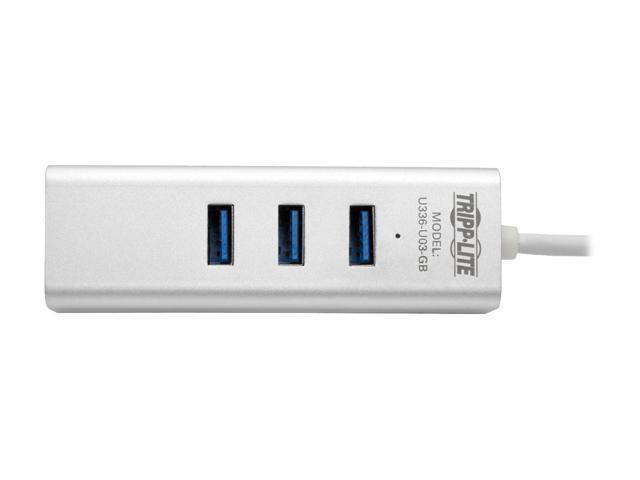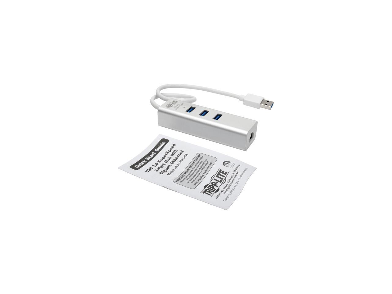 Tripp Lite USB 3.0 SuperSpeed to Gigabit Ethernet (GbE) NIC Network Adapter with 3 Port USB 3.0 Hub, USB Type-A (U336-U03-GB)