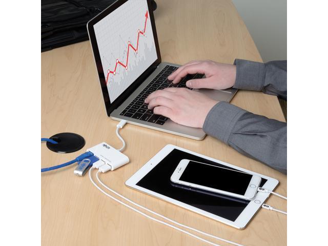 Tripp Lite 3-Port USB-C to USB-A Hub Portable w/ Gigabit Ethernet Port RJ45 (U460-003-3AG)