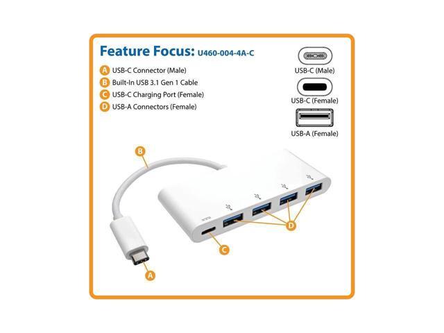 Tripp Lite 4-Port USB 3.1 USB-C to USB-A Hub w/ USB-C Charging Port 5 Gbps (U460-004-4A-C)