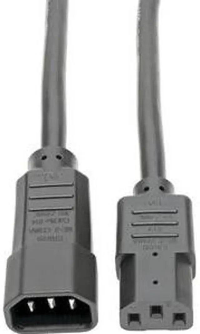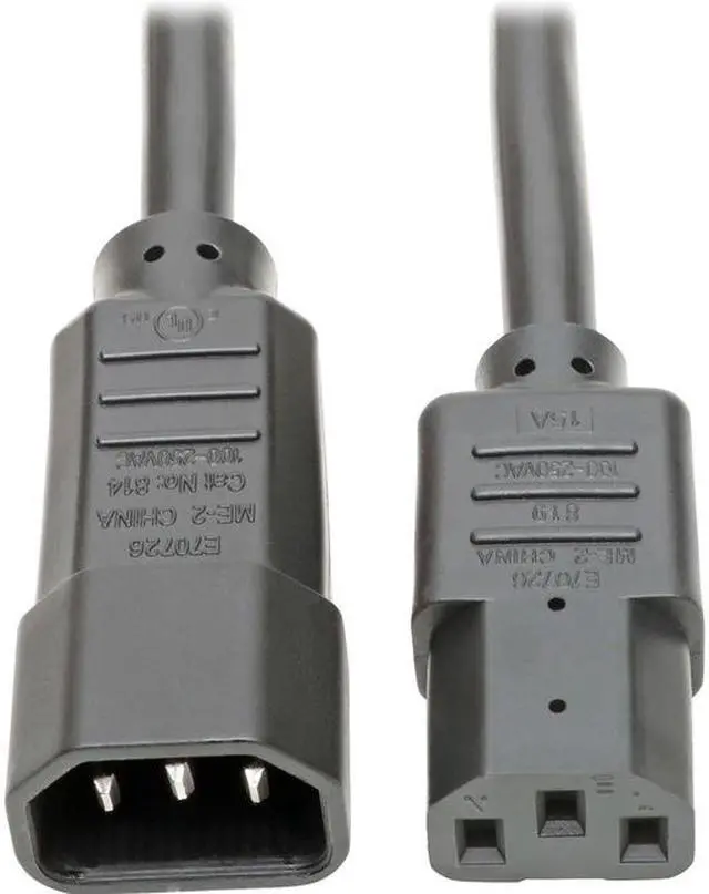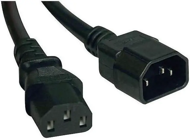 Heavy-Duty C13 to C14 Power Extension Cable - 15A, 100-250V, 14 AWG, 2 ft., Blac