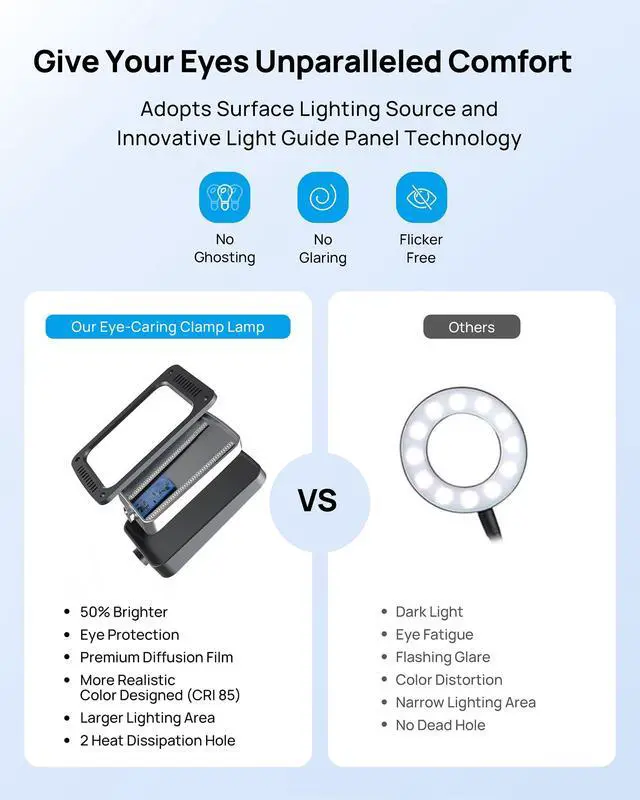 Our latest surface lighting source and innovative light guide panel make it flicker-free, non-glaring, eye-caring for kids, the elderly, and those with vision issues like macular degeneration.)