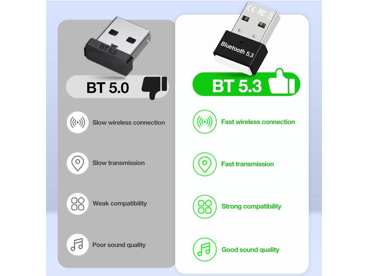 USB Bluetooth 5.3 Adapter for PC Win11/10/8.1/8/7/XP/Vista, Bluetooth Dongle Receiver/Transmitter Support Multiple Device Connections: Headset, Mouse, Keyboard, Printer, Speaker