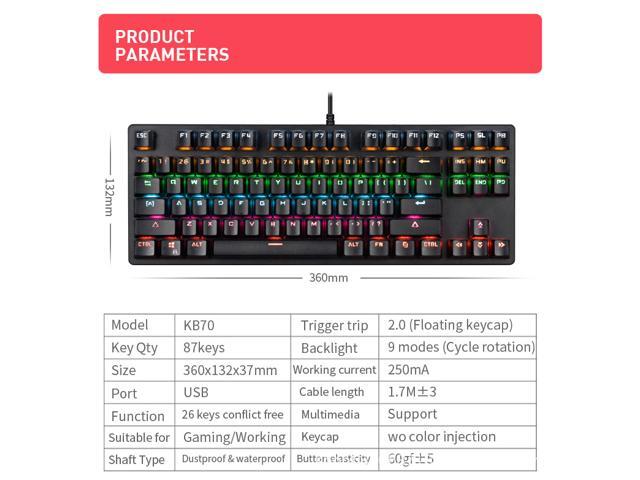 Space Saving Design: The Compact 87-keys Space-Saving Mechanical Keyboard Design, frees up workspace on your desk without sacrificing performance and comfort during your gaming sessions