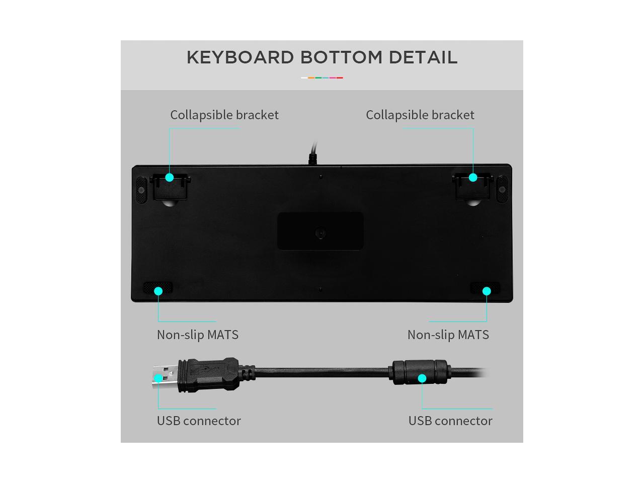 Non-Slip Ergonomic and Spill-Resistant Design: This Mechanical Gaming keyboard comes with Non-Slip adjustable rear feet for the perfect typing angle and a gold-plated corrosion free USB connector for a reliable connection.