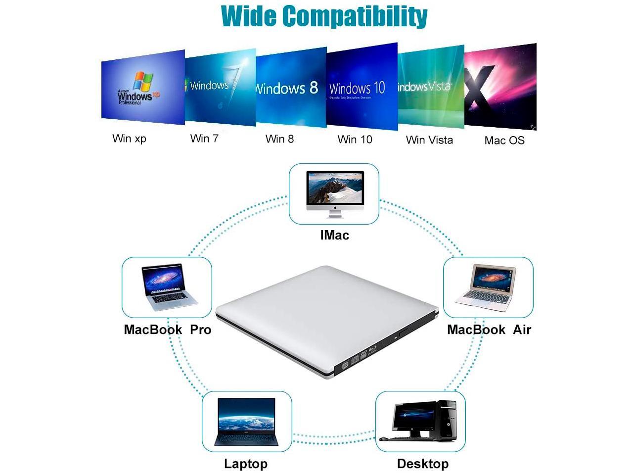 - Wide Compatibility - Compatible with WIN XP/VISTA,WIN7,WIN8,WIN10/11, MAC OS system.It can read and burn CDs,DVDs and Blu-ray discs;