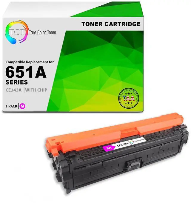 TCT offers quality HP 651A CE343A compatible replacement cartridges that fit effortlessly into your printer. You will find crisp, clear prints with consistently dark tones and sharp images in every single print job. Get professional quality prints every time and save a bundle with True Color Toners high quality printing supplies!