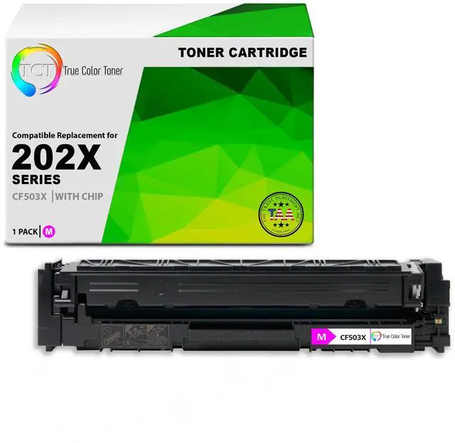 TCT offers quality HP 202X CF503X High Yield compatible replacement cartridges that fit effortlessly into your printer. You will find crisp, clear prints with consistently dark tones and sharp images in every single print job. Get professional quality prints every time and save a bundle with True Color Toners high quality printing supplies!