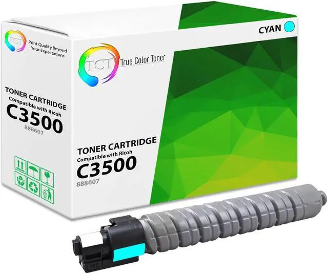 TCT offers quality Ricoh C3500 888607 841345 compatible replacement cartridges that fit effortlessly into your printer. You will find crisp, clear prints with consistently dark tones and sharp images in every single print job. Get professional quality prints every time and save a bundle with True Color Toners high quality printing supplies!