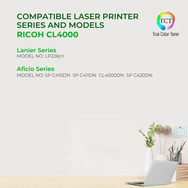 TCT offers quality Ricoh Type 145 CL4000 888308 compatible replacement cartridges that fit effortlessly into your printer. You will find crisp, clear prints with consistently dark tones and sharp images in every single print job. Get professional quality prints every time and save a bundle with True Color Toners high quality printing supplies!