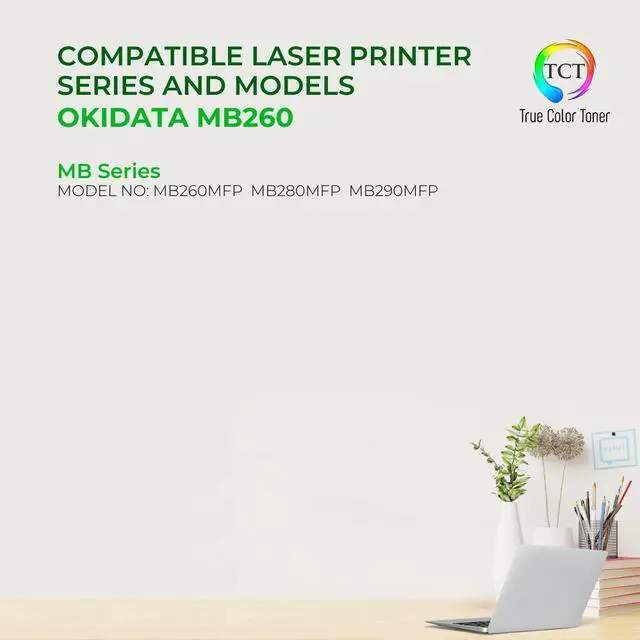 TCT offers quality Okidata MB260 56123401 56123402 compatible replacement cartridges that fit effortlessly into your printer. You will find crisp, clear prints with consistently dark tones and sharp images in every single print job. Get professional quality prints every time and save a bundle with True Color Toners high quality printing supplies!