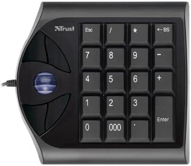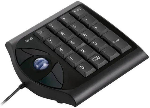 | Features | 4 button optical trackball with integrated numeric keypad Ideal for notebook users: more comfort than a ordinary built in touchpad and easy to use numeric keypad Convenient integrated numeric keypad to take full control of your spreadsheet and database applications, like Excel or Access Ergonomic design foldable stand at the bottom providing best working position 3rd and 4th button to easy navigate back and forward in your Internet browser High quality advanced optical sensor providing motion control with high precision |