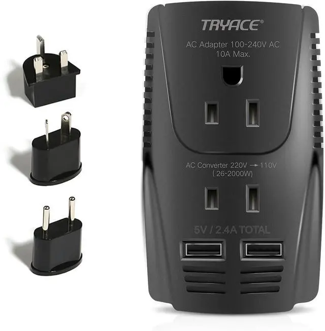 2-prong Converter Socket Works for 100-120V Hair Dryer/Hair Straightener