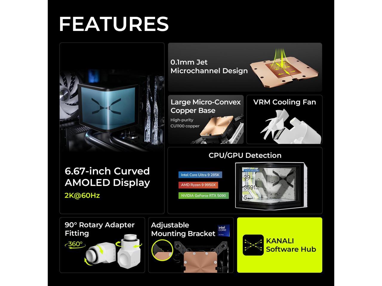 TRYX Panorama CPU Water Block White 6.67'' AMOLED Curved Screen 3D Anamorphic Effect Display 2K@60Hz Customizable Content for Intel LGA 1700/1851/1200 AMD AM5/AM4 (L-P0CL-DS0M-G0W)