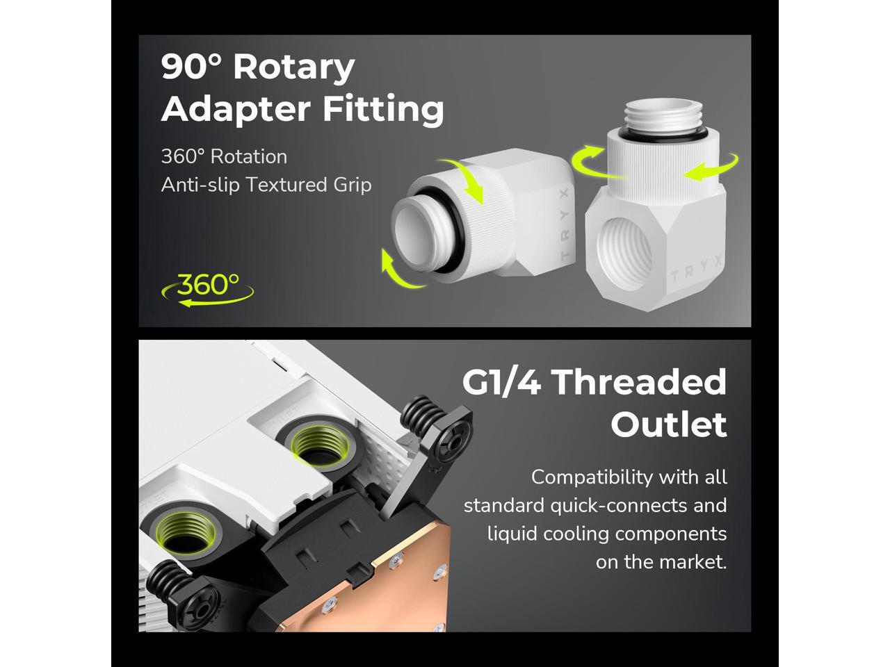 - Premium 90° Rotary Fittings: Crafted from H57-class brass with 360° rotation and anti-slip texture, ensuring secure, flexible, and durable connections for your cooling loop.