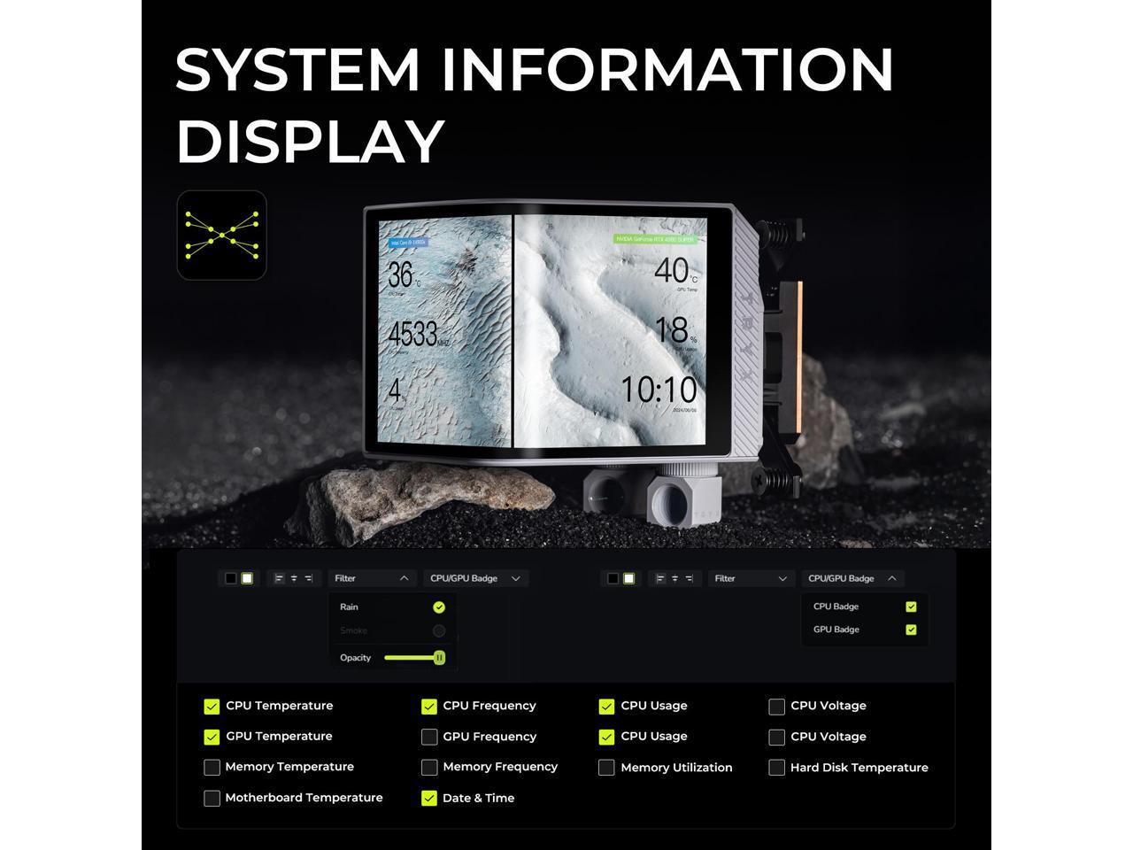 - Stunning 6.67-Inch 2K AMOLED Display: Elevate your PC build with a vibrant L-shaped AMOLED screen at 60Hz, delivering beautiful anamorphic and customizable content from multiple angles, the TRYX PANORAMA WB is your new showstopping centerpiece.