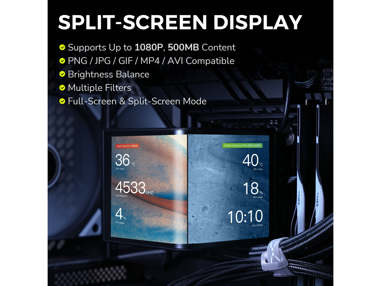 - Upload and adjust your own media to display, including PNG/JPG/GIF/MP4/AVI (1080P, 500M maximum)