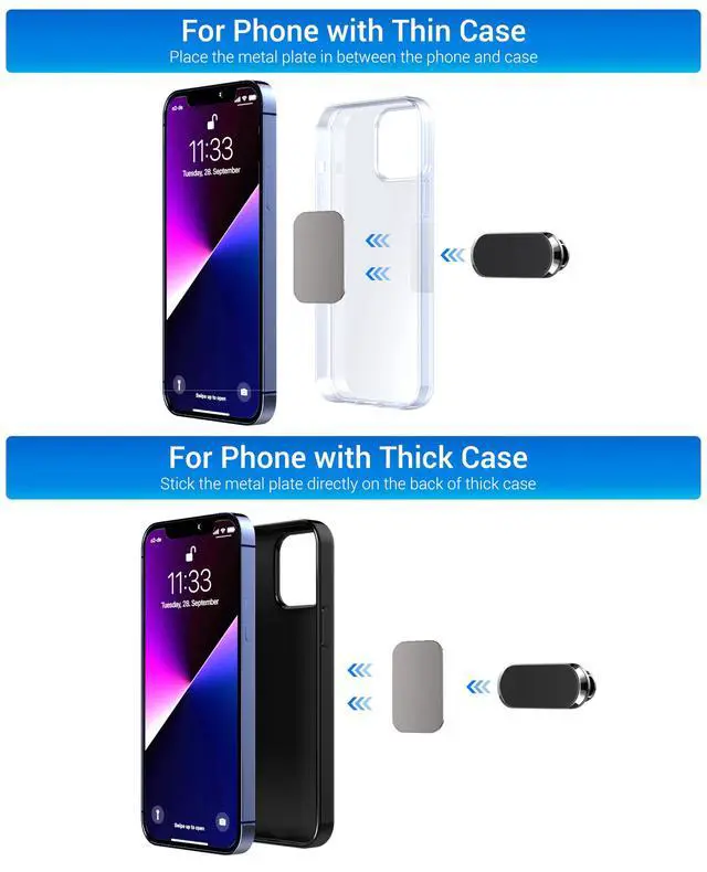 - Standard magnetic mounts are too weak for armor-style cases. Our system uses a dedicated Metal Plate (Included) that adheres directly to your case, creating an unbreakable magnetic bond regardless of case thickness.