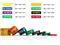 8 basic resistance levels with corresponding colors are available; red:25-55 lbs, green(small):30-60 lbs, black:35-80 lbs, purple:40-90 lbs, green(big):70-160 lbs, blue:80-190 lbs, orange:85-230 lbs, yellow:120-300 lbs, you can also make your own combination out of them for your desired level set.