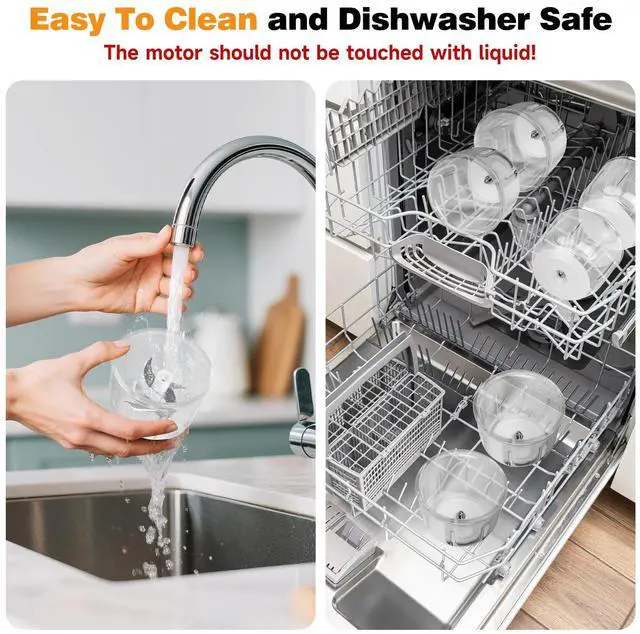 Easy to Clean & Perfect Vegetable Chopper GiftThe detachable glass bowl and blades are dishwasher safe and waterproof for effortless cleaning (MOTOR can not be washed). A practical vegetable chopper that makes cooking easier an ideal gift for family, friends, or cooking enthusiasts
