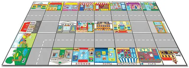 TTS Bee-Bot & Blue-Bot French Town Mat Interactive Vinyl Playmat 120 × 75 cm - Language Learning & Coding Floor Activity