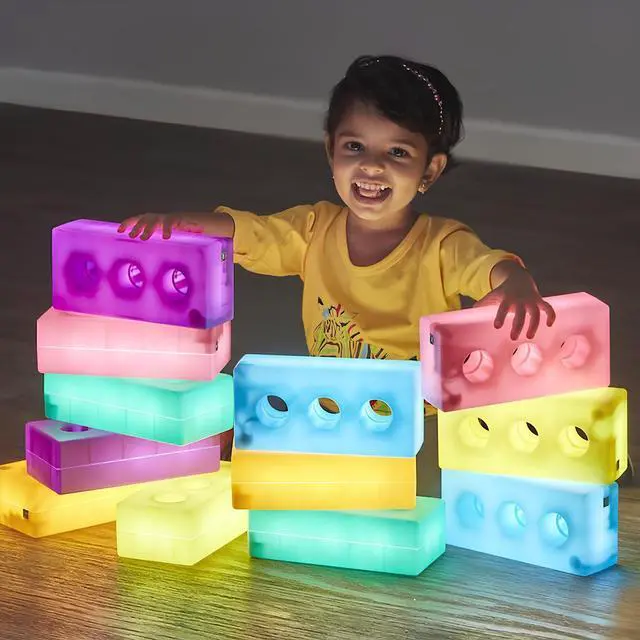 Perfect for classrooms, playrooms, sensory environments, and STEAM enrichment, these light-up bricks help develop fine motor skills, stimulate curiosity about light and color, and encourage imaginative construction play.