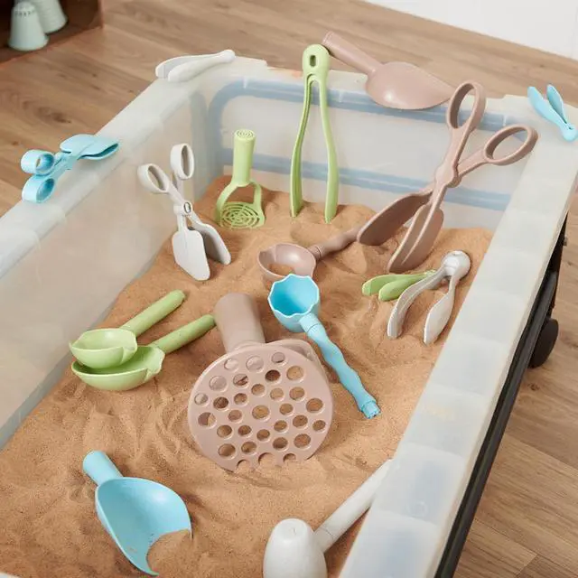 These versatile utensils encourage tactile learning, early STEAM investigation, problem-solving, shape and color categorization, and confident tool use aligned with EYFS physical development goals. Made from eco-friendly materials, this set helps reduce classroom ecological impact while delivering engaging hands-on learning.