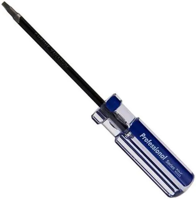 Tuff Stuff 53333 R2 Robertson Chrome Vanadium Steel Screwdriver Tip#R2, specially designed with a cellulose acetate handle, that's clear transparent with blue inlay stripes. This robertson screw driver is part of the Tuff Stuff professional series and it features a chrome vanadium shaft.