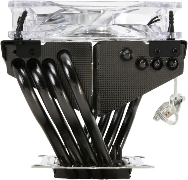 Unique Design for HeatpipeAdopting the core-contact technology, the squashed heatpipe as the base directly conducts the heat from CPU for maximizing the heat transferring. In addition, the unique alignment of the three 8mm and two 6mm U-shaped heatpipes significantly enhances the heat dispersing performance.