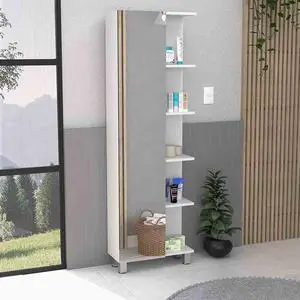 Linen Single Door Cabinet 62" H, Five External Shelves, Four Interior Shelves, White