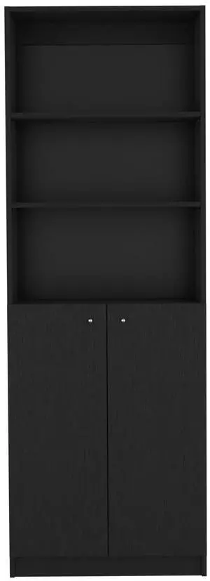 Stanton Tall Storage Cabinet With Two Doors And Three Open Shelves, White