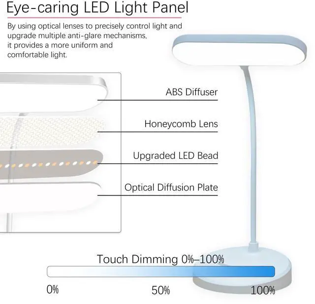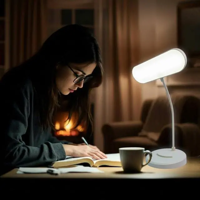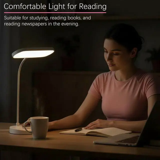 This multifunctional desk lamp is designed to provide comfortable, eye-friendly lighting for studying, reading, working, or bedside use. It features upgraded LED beads with a honeycomb diffusion lens and soft ABS lampshade, delivering uniform, flicker-free illumination that reduces eye strain during long sessions.