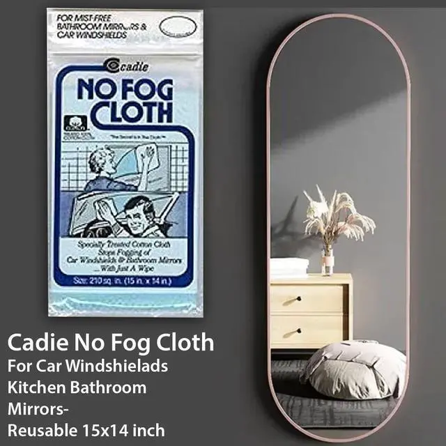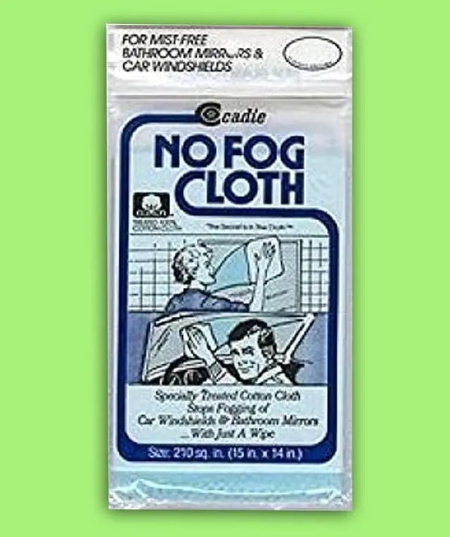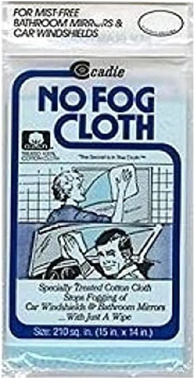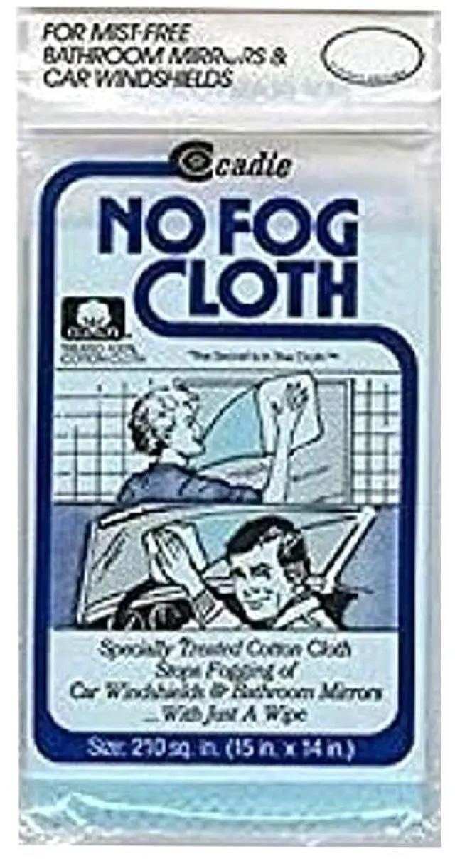 Cadie No Fog Cloth -"The secret is in the cloth" for mist-free bathroom mirrors and car windshields. The Cadie No Fog Cloth is a specially treated cotton cloth that prevents fogging on car windows and bathroom mirrors with just a quick wipe. Its also perfect for kitchen windows and eyeglasses. This reusable, long-lasting cloth is designed to provide continuous fog-free performance. The package includes one 15x14 inch 100% cotton cloth.