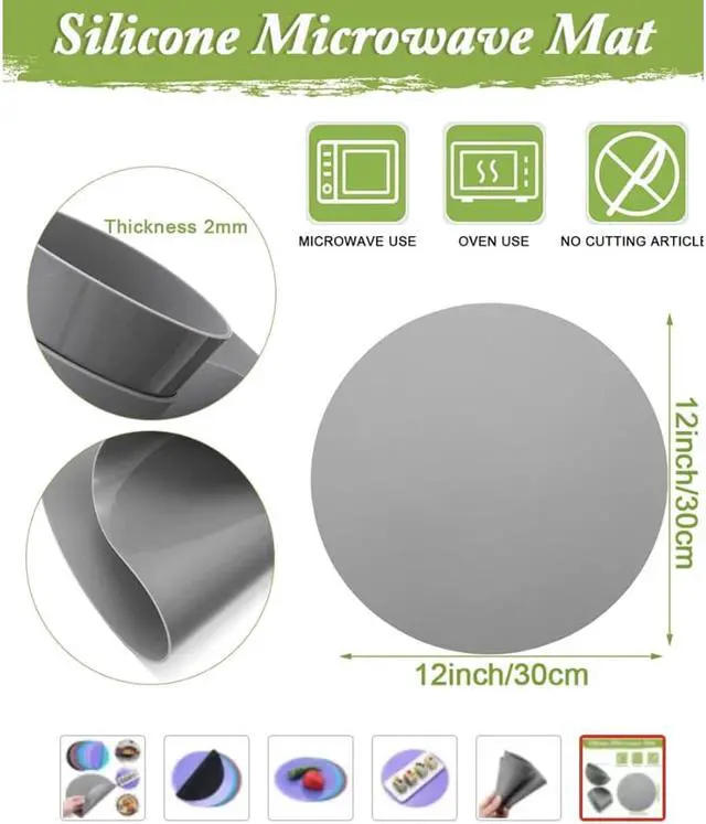 Keep your microwave spotless with the Silicone Microwave Spill Mat. This high quality 11.75 inch round mat prevents accidental spills and doubles as a food cover for pots and bowls aids in jar opening and serves as a handy placemat. Sold in a convenient two pack it offers versatile utility for your kitchen tasks ensuring cleanliness and efficiency in food preparation.