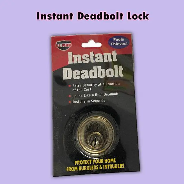 Introducing the Instant Deadbolt Lock your premier defense against burglars and intruders. Outsmart thieves and fortify your home with the sophisticated brass finished instant deadbolt. Resembling a genuine deadbolt it installs seamlessly in seconds deterring criminals effectively. Enhance your security without breaking the bank offering unparalleled protection at a fraction of the cost. Enjoy peace of mind with this innovative solution effortlessly applied using advanced adhesive technology.